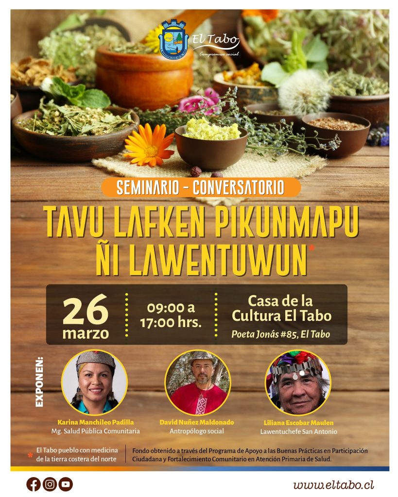 “TAVU LAFKEN PIKUNMAPU ÑI LAWENTUWUN”, fondo obtenido a través del Programa de Apoyo a las Buenas Prácticas en Participación Ciudadana y Fortalecimiento Comunitario en Atención Primaria de Salud. El seminario contara con la participación de 3 expositores.as: Karina Manchileo Padilla, Mg. Salud Pública Comunitaria Liliana Escobar Maulen, Lawentuchefe San Antonio David Nuñez Maldonado, Antropólogo social […]