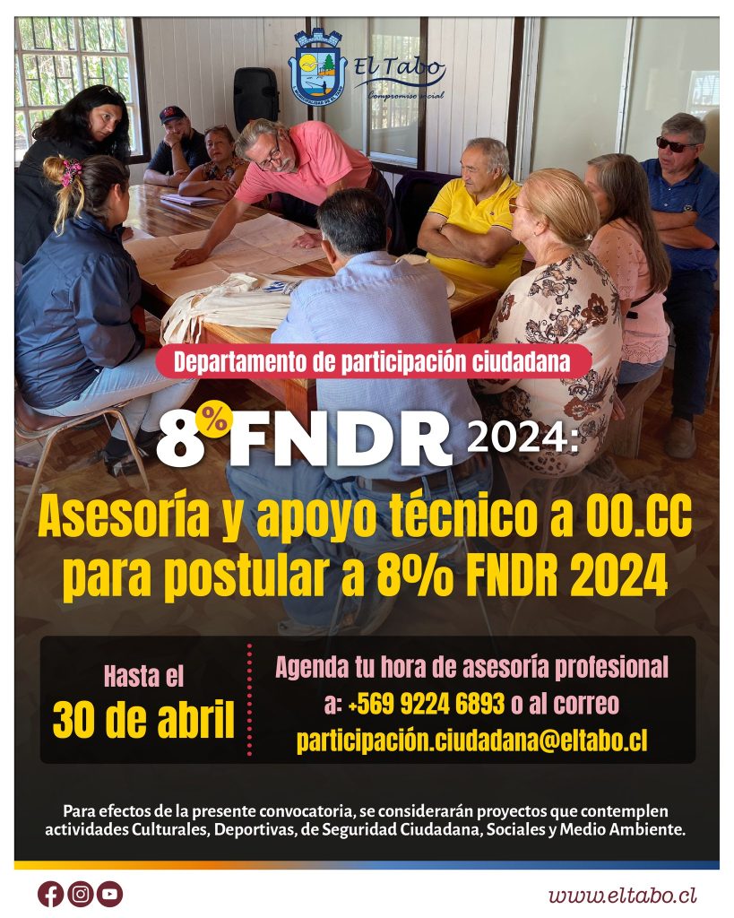 Postula ahora al 8% FNDR 2024, obtén asesoría y apoyo técnico para postular tu proyecto!