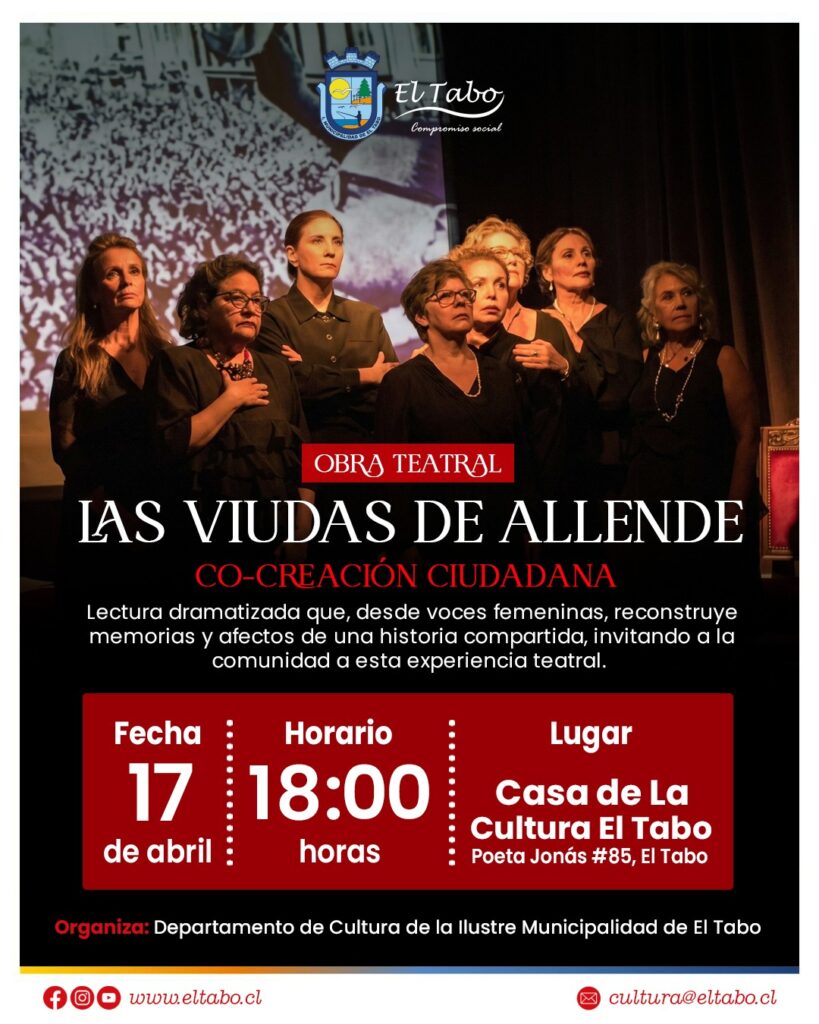 A través de nuestro Departamento de Cultura invitamos a toda la comunidad a ser parte de la experiencia teatral “𝗟𝗮𝘀 𝗩𝗶𝘂𝗱𝗮𝘀 𝗱𝗲 𝗔𝗹𝗹𝗲𝗻𝗱𝗲”. Una obra que invita a la reflexión y emoción desde voces femeninas, en un espacio pensado para el encuentro y la cultura Viernes 17 de abril 18:00 hrs Casa de la Cultura […]