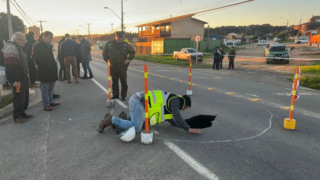 Socavón en la vía obligó a suspender tránsito en la ruta costera que une El Tabo con Isla Negra