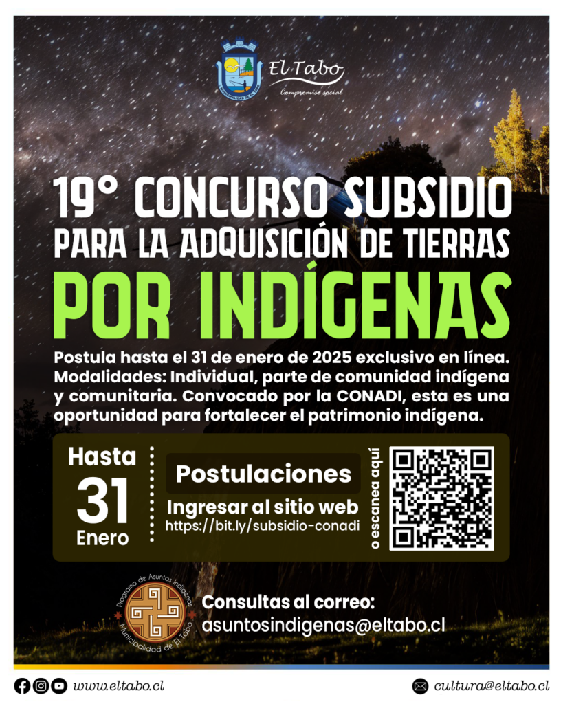 Si perteneces a un pueblo originario y cuentas con certificación indígena CONADI, esta es tu oportunidad. El concurso está abierto tanto para postulaciones individuales como comunitarias o de parte de comunidades indígenas. El plazo de postulación es desde el 2 de enero hasta el 31 de enero de 2025. Requisitos: Postulación Individual: Copia de Certificado […]