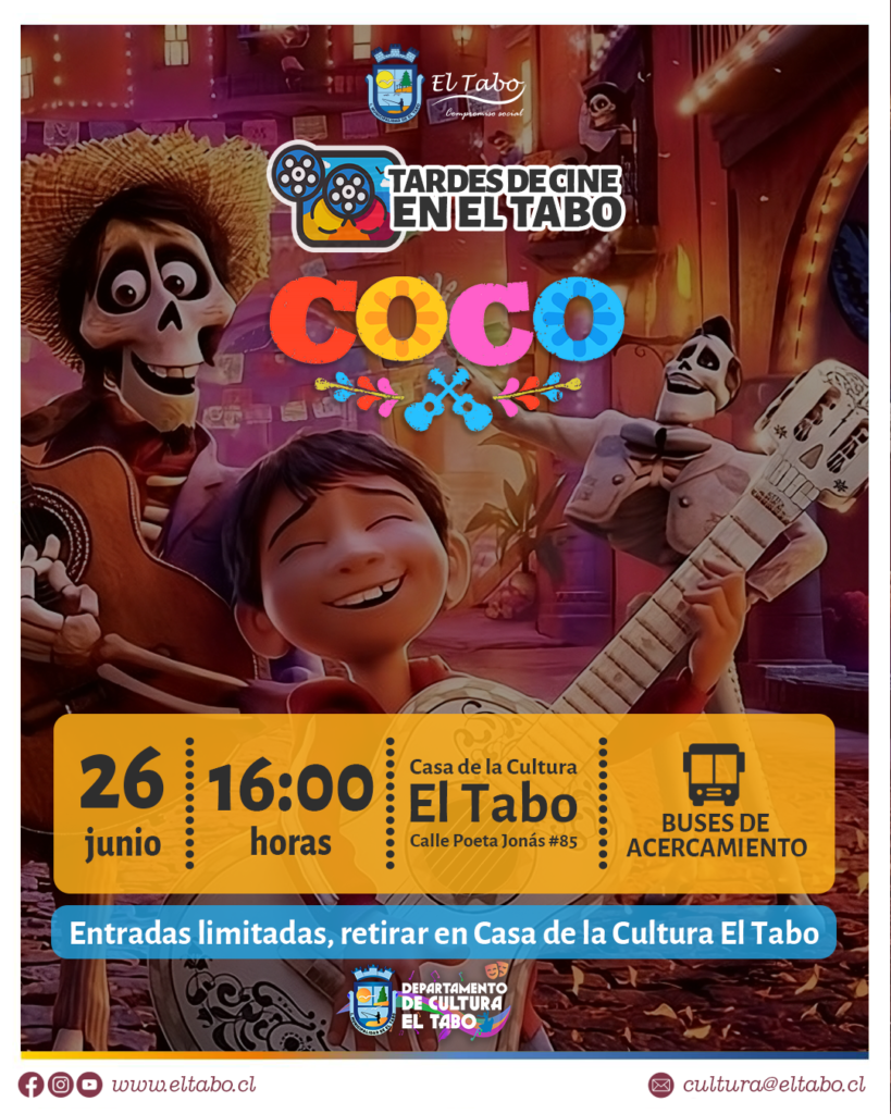 Tardes de Cine en El Tabo exhibirá la película «Coco»