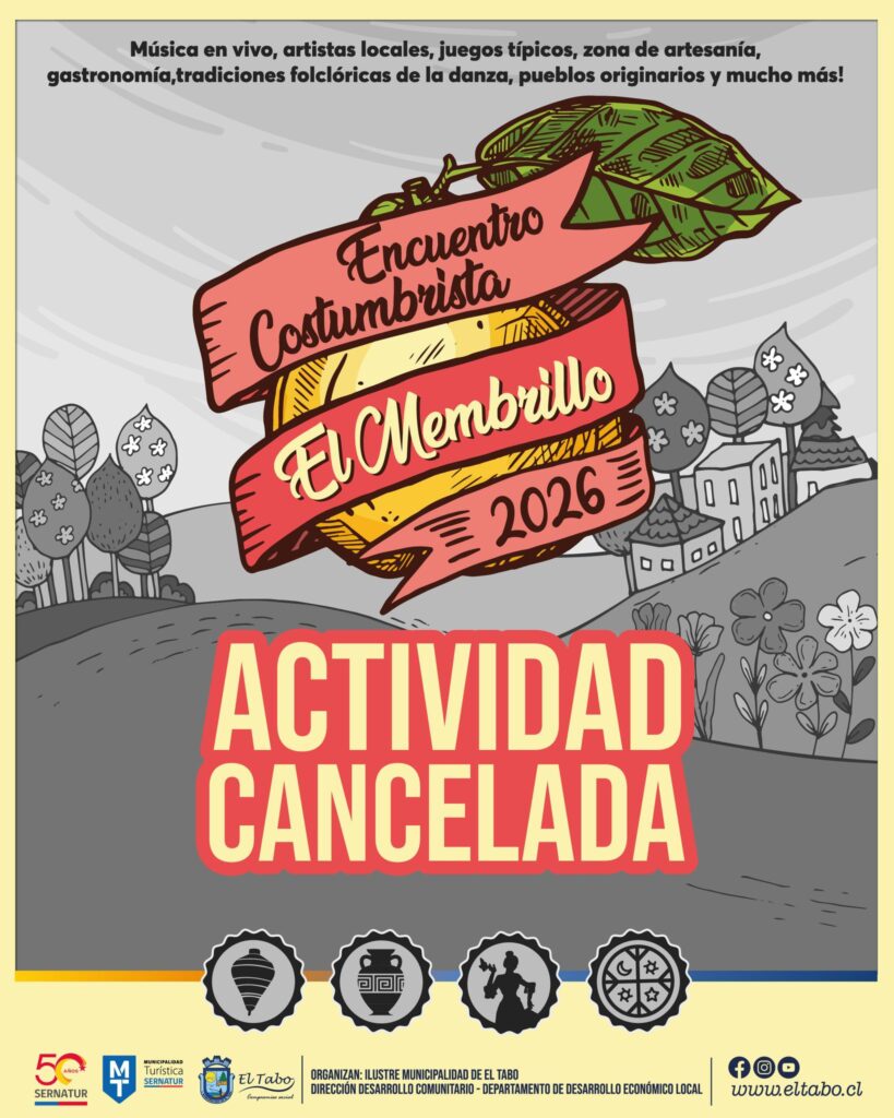 La Ilustre Municipalidad de El Tabo informa a la comunidad que, por situaciones de carácter externo al municipio y por motivos de fuerza mayor, el Encuentro Costumbrista de El Membrillo no podrá realizarse en la fecha y condiciones originalmente programadas. Esta situación se origina debido a que la productora responsable de la ejecución del evento […]