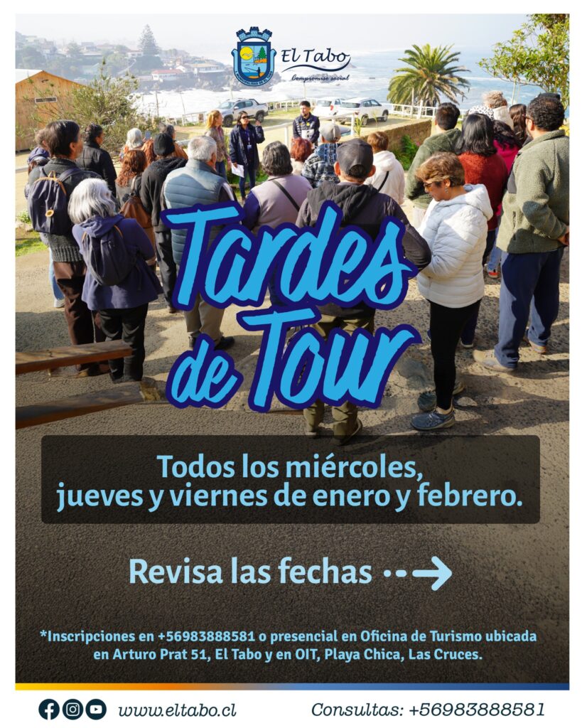 Nuestra querida comuna de El Tabo posee hermosos rincones y santuarios de la naturaleza que hacen de la localidad un lugar lleno de magia y belleza natural. Es por eso que la Oficina de Turismo del municipio invita a todos a participar de “Tardes de Tour 2026”, iniciativa que consiste en visitar diversos lugares de […]