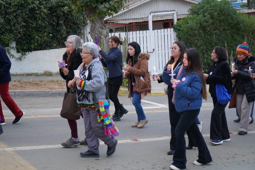 En el centro de la comuna, se reunieron medio centenar de mujeres para alzar la voz contra las distintas formas de violencia que sufren las mujeres. Las participantes caminaron con una vela en sus manos, en memoria de todas las que ya no están, a causa de la violencia de género, a lo largo de calle Arturo Prat con Avenida San Marcos, hasta la gruta Nuestra Señora del Rosario, donde concluyó la actividad con intervenciones para reflexionar juntas sobre la importancia de erradicar esta problemática.